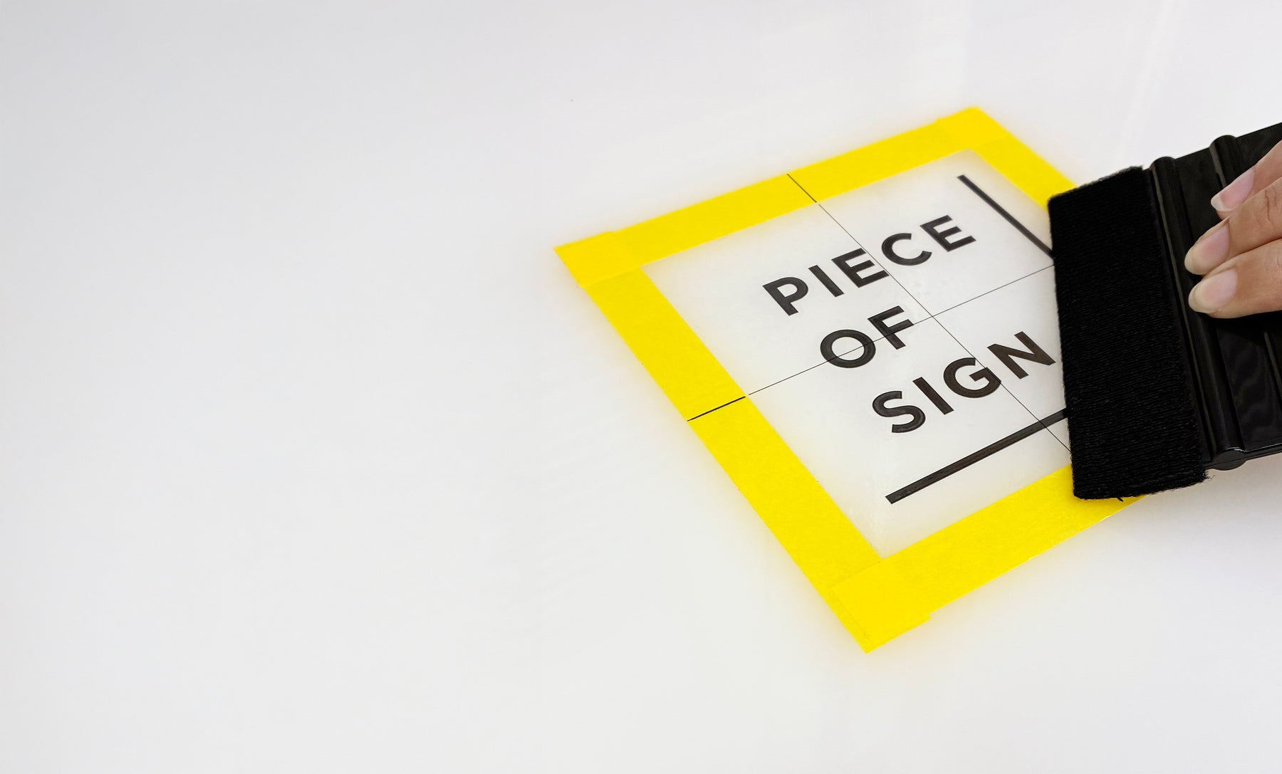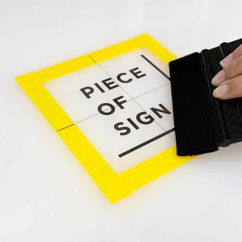 ④ ガイドに合わせて貼り、上からスキージーで擦ります。