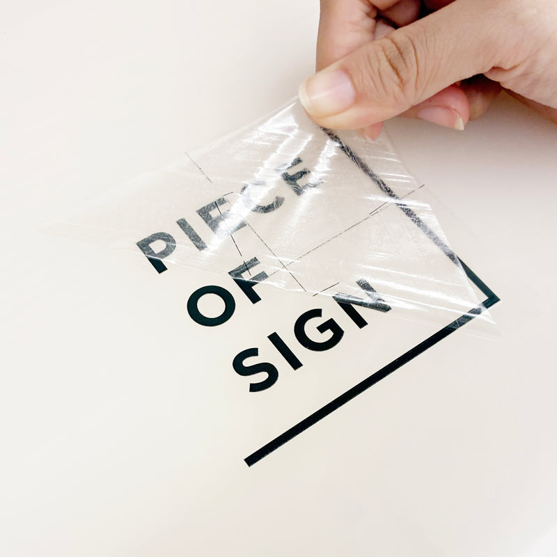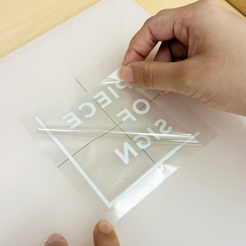 注意:平な面に置いた状態で剥離フィルムをはがしてください。アプリケーションシートが湾曲すると、印字部分にヒビが入る可能性があります。