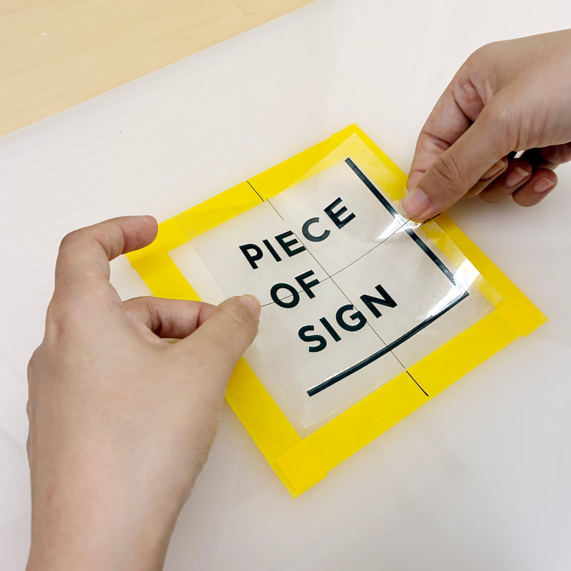 ① 裏面の剥離フィルムを剥がす前に、貼る位置を決めて置き、周囲をマスキングテープ等で囲います。