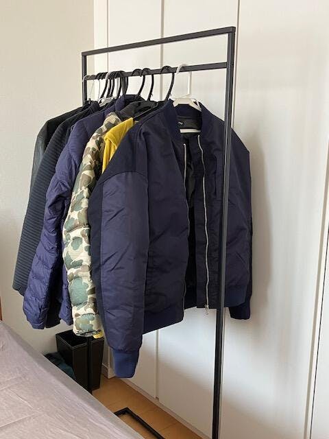 空間の邪魔にならず、しかも凛とした佇まいでアクセントにもなってくれる、これ以上ないハンガーラックです。サイズ的にもスッキリしつつもかけられる洋服の量はたっぷりで気に入っています。