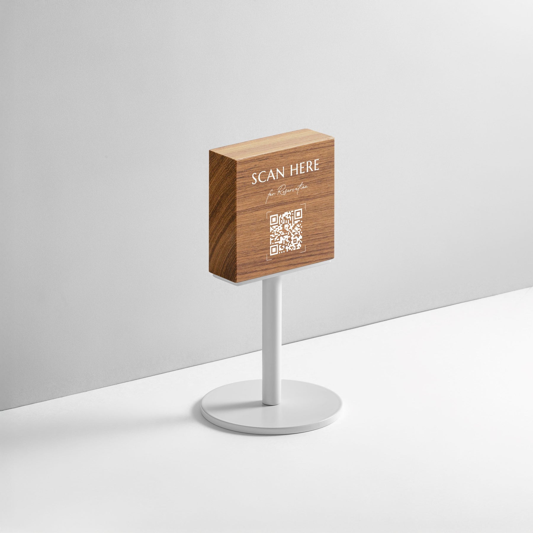 長さの異なる3本の支柱が付属。控えめに目立たせたり、QRが読み込みやすいように高さを持たせたりと、用途や場所に応じて調整できます。